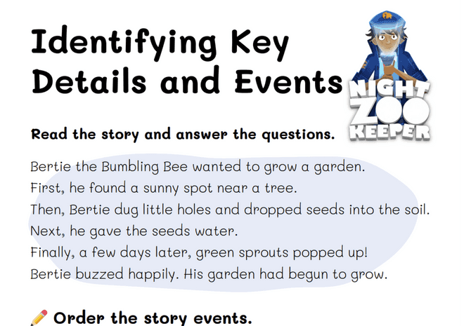 Grade 1 is where kids start building strong foundations in reading comprehension. Children will begin to explore the meaning behind the words they read, helping them become confident readers and thinkers. Reading comprehension skills covered in Grade 1 typically include: